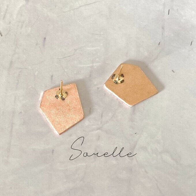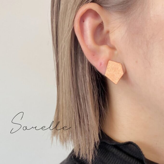 銅質五邊形耳環,它擁有銅獨特的光澤和深邃的質感,閃耀著如玫瑰金般的光芒。