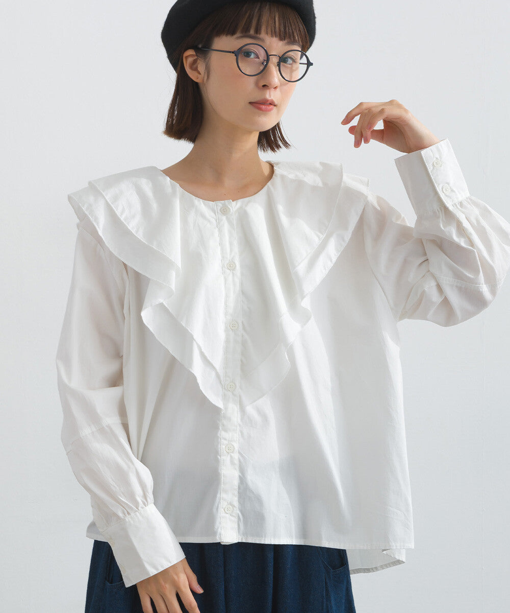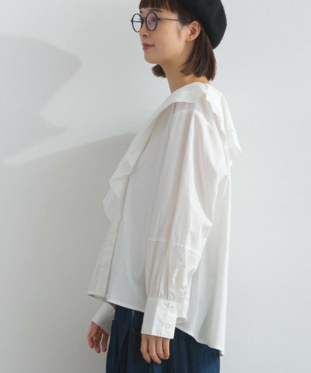 從肩膀到胸部的荷葉邊設計更凸顯了布料的質感。輪廓寬鬆,荷葉邊隨著你的動作輕輕搖曳,