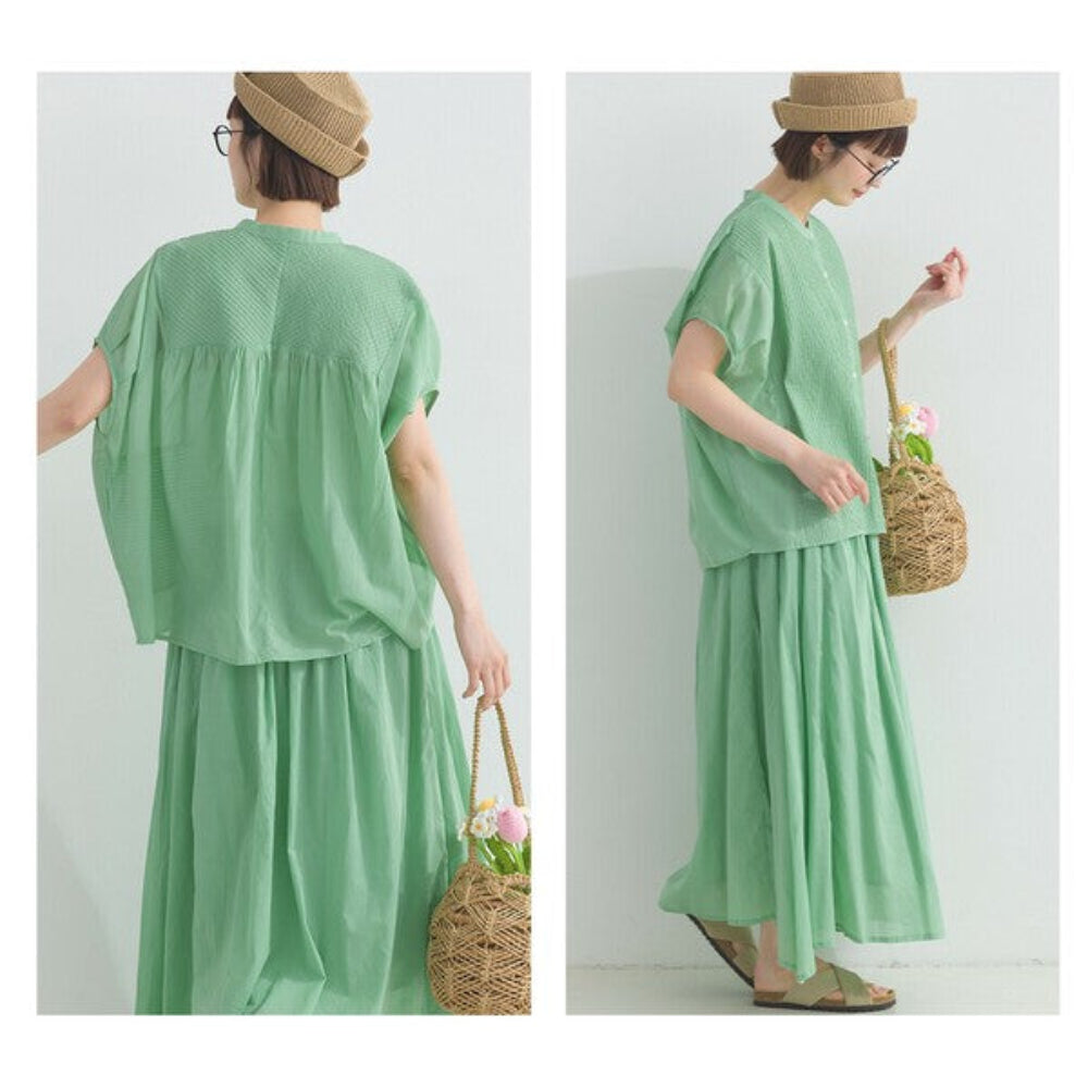 乾淨的立領和短袖長度營造出清涼的印象,寬鬆透氣,適合任何體型的人穿著。