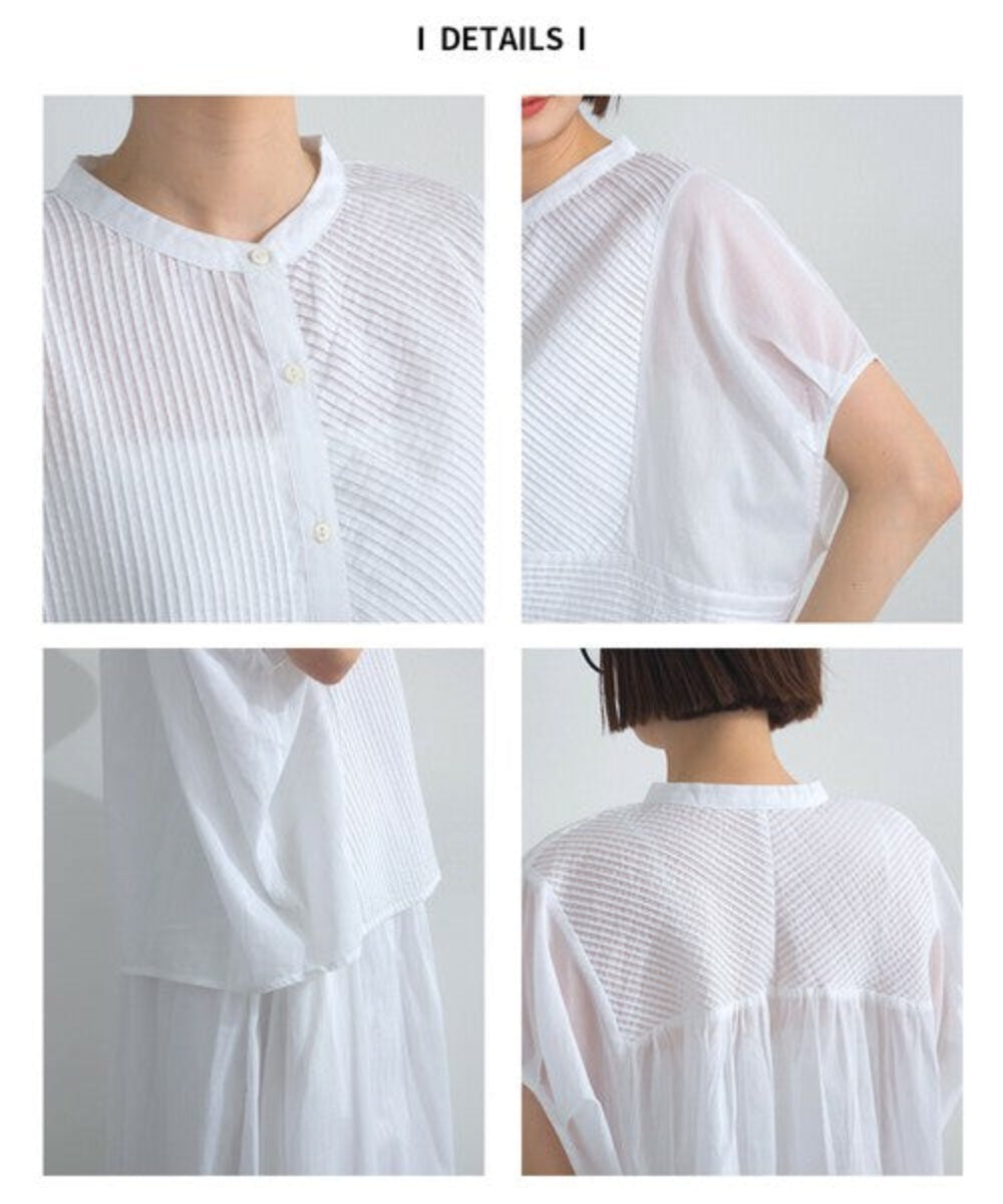 布料的適度透明度讓您可以享受分層風格。正面和背面的大量褶襉賦予了這件衣服經典的外觀。在散發古典氣息的同時,又能輕鬆融入現代、自然的感覺。