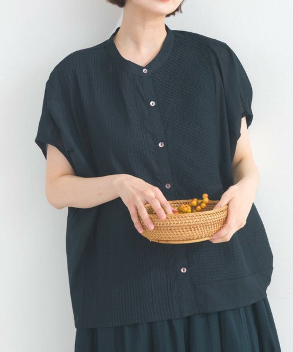 純棉透薄褶襉襯衫