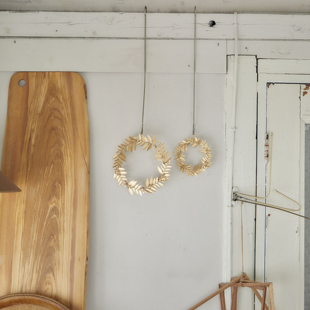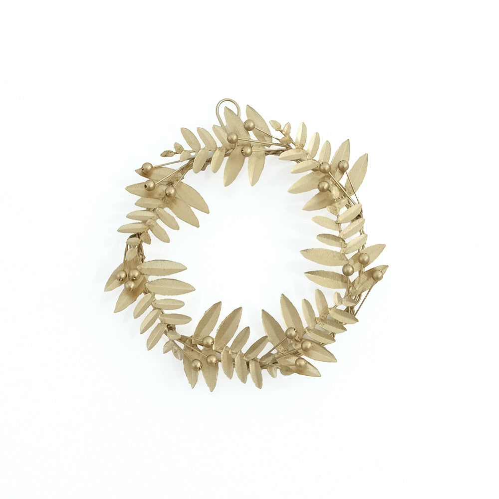 這款錫製花環由多層葉子圖案層疊而成,