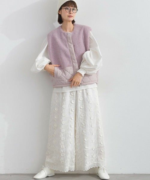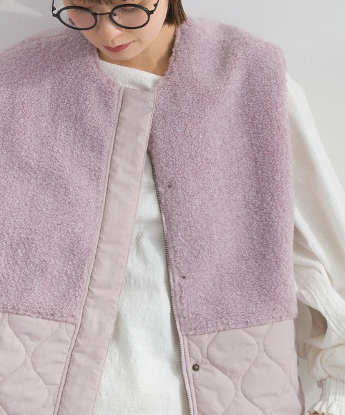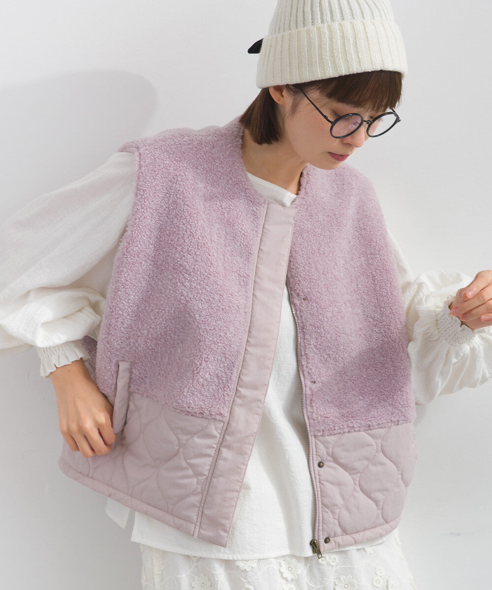 柔軟蓬鬆,保暖極佳。這款當季背心採用不同材質的毛絨和絎縫布料交織而成。