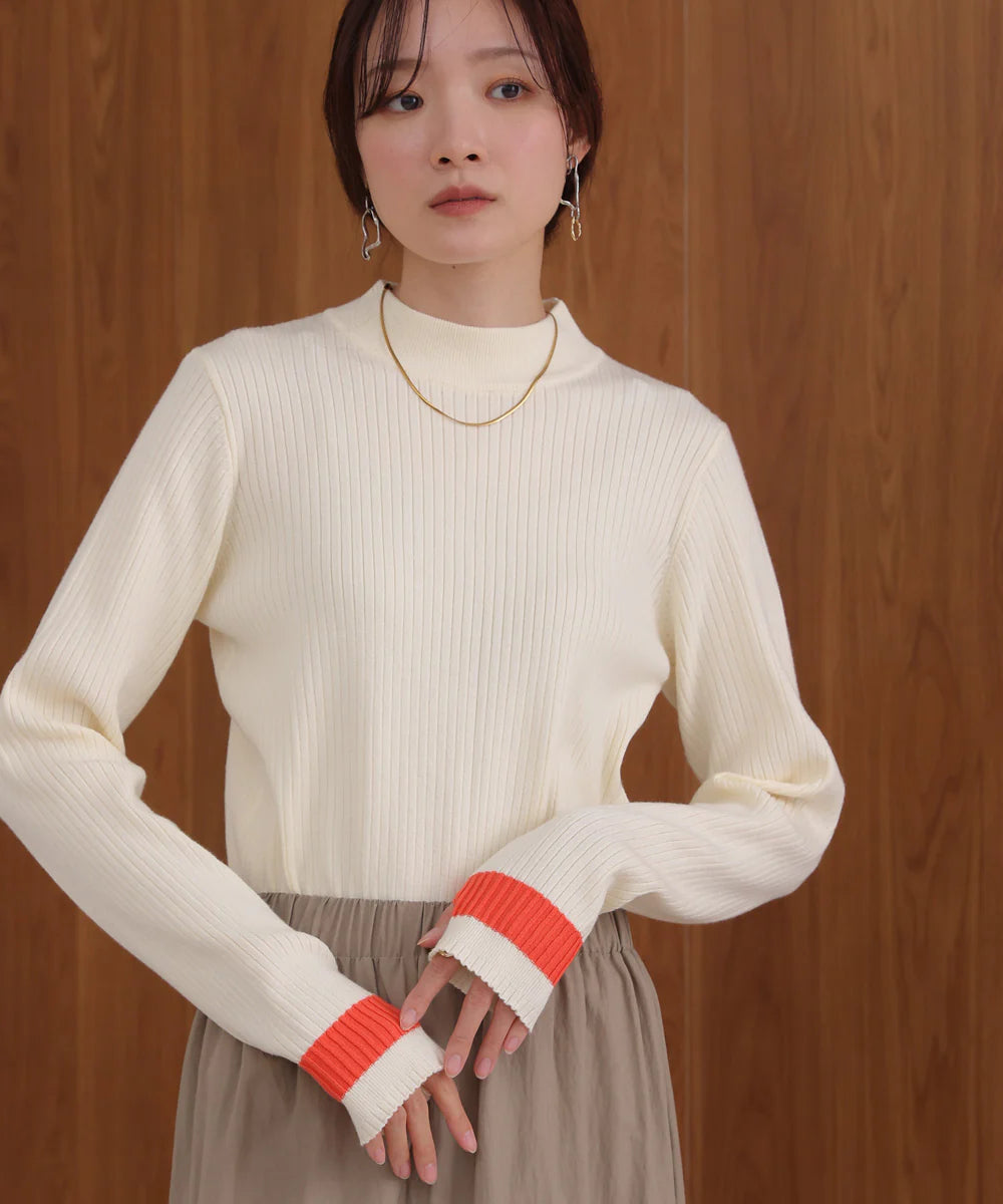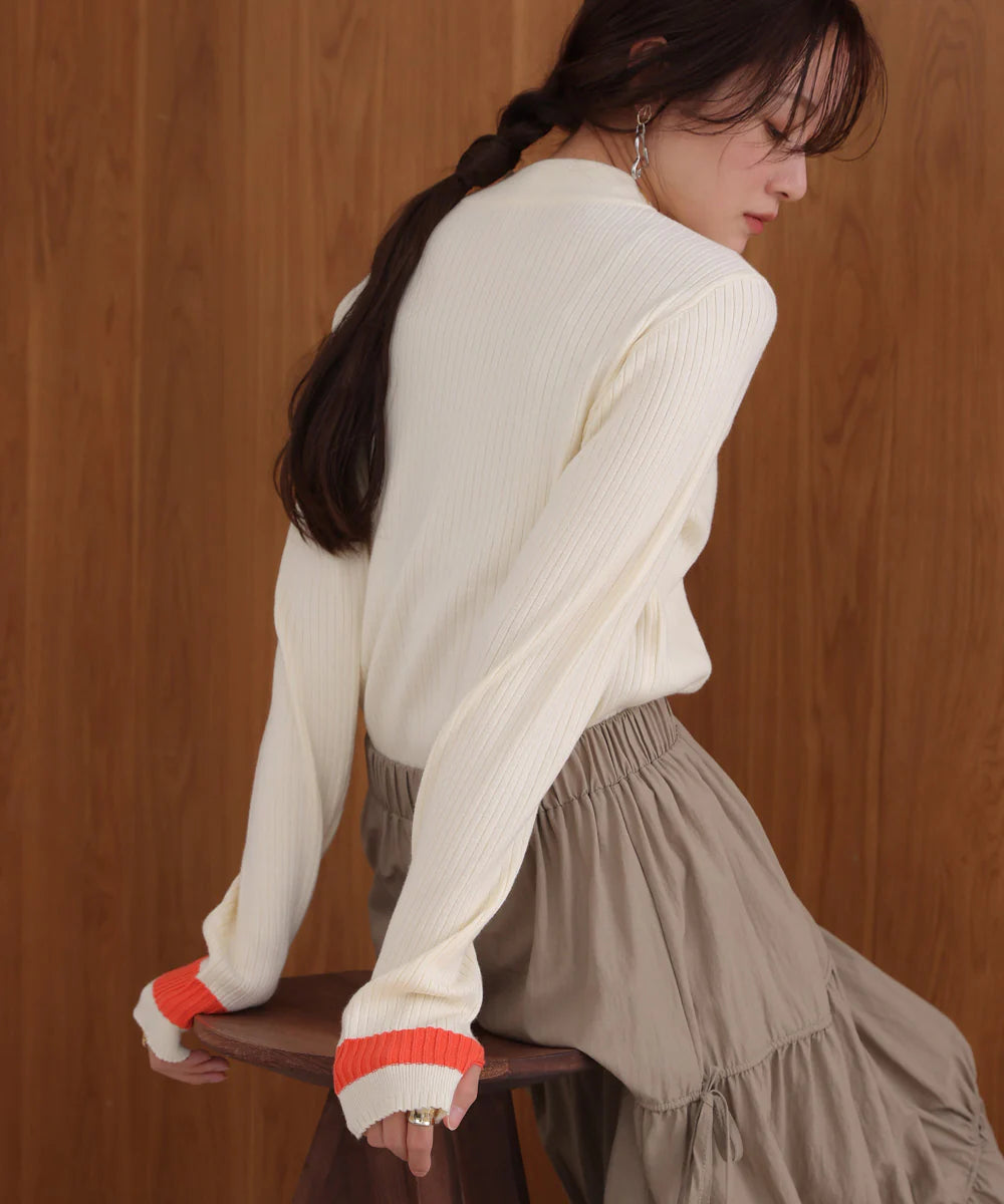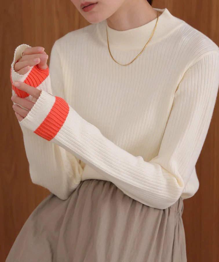 羅紋針織衫,袖口處飾以精緻的撞色線條,展現成熟女性的趣味性。簡約時尚的拇指孔設計,讓您從指尖也能享受時尚。領口設計既展現優雅氣質,貼合身形,凸顯女性柔美曲線。基本款設計,輕鬆駕馭各種場合,無論工作或休閒,都能完美展現您的時尚品味。