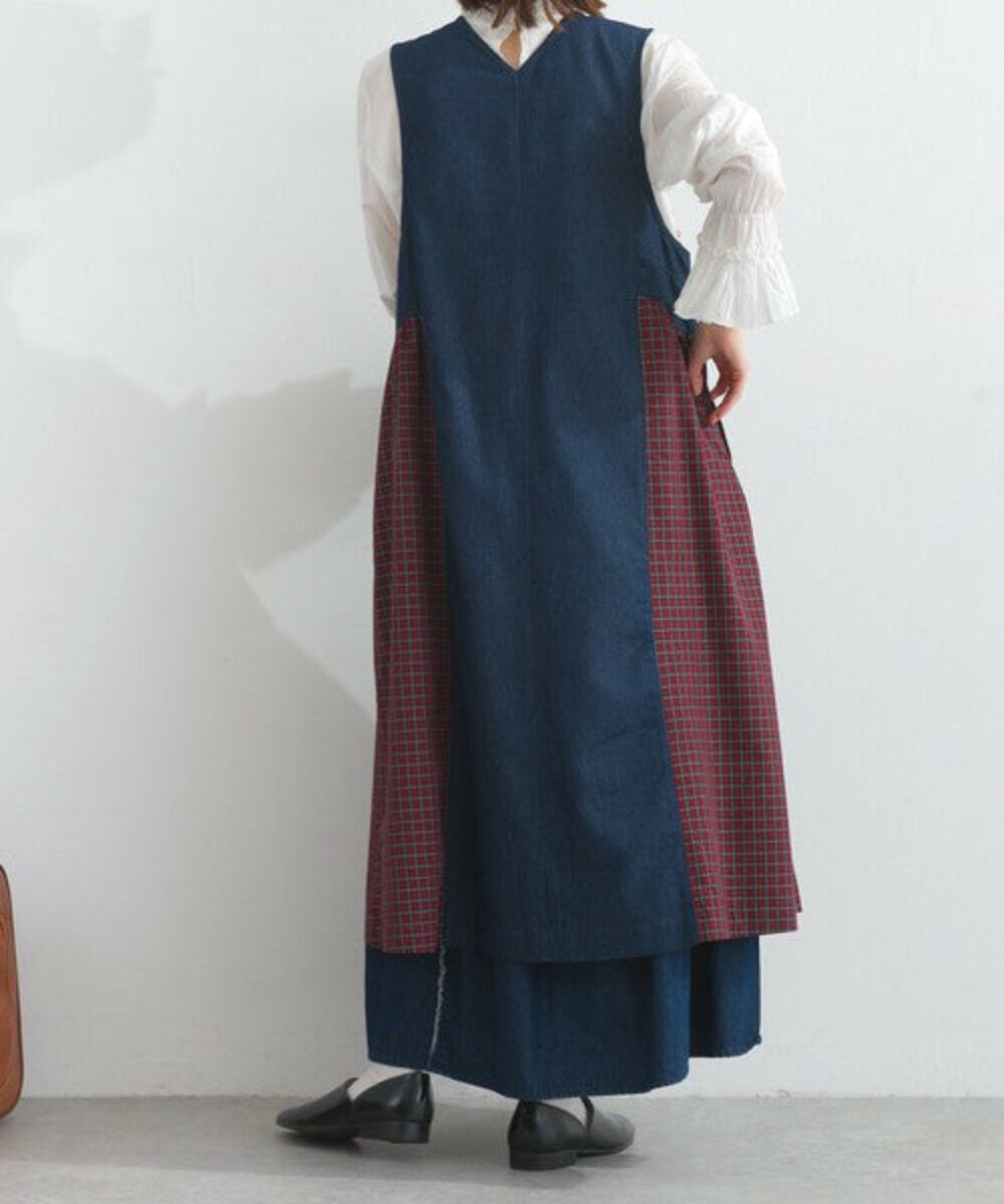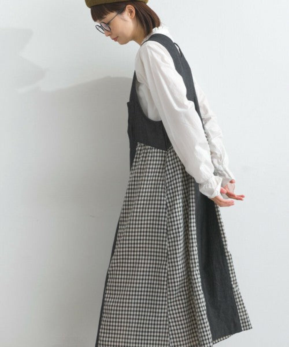 層疊款式,輪廓靈活迷人。格紋圖案和牛仔布等不同材質的混搭,讓這款洋裝俏皮感。