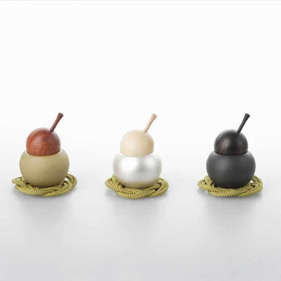 Designed by Anji Futaka, this lovely bronze chime is shaped like a pear. The lower part is a copper chime, and the upper part is a wooden chime stick. Small but makes a beautiful sound.