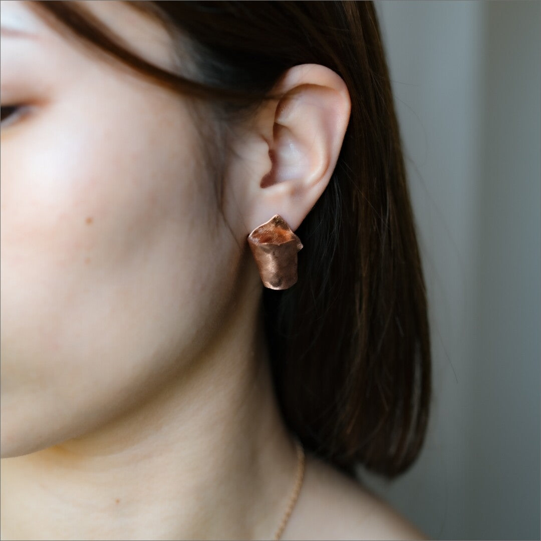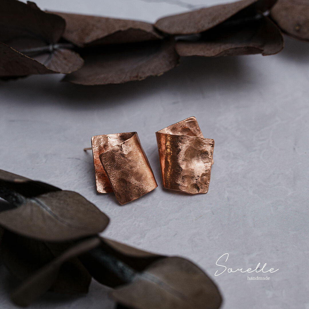 純銅錘紋折疊造型穿孔耳環
