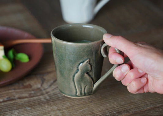 益子燒 水滴形貓咪圖案小皿