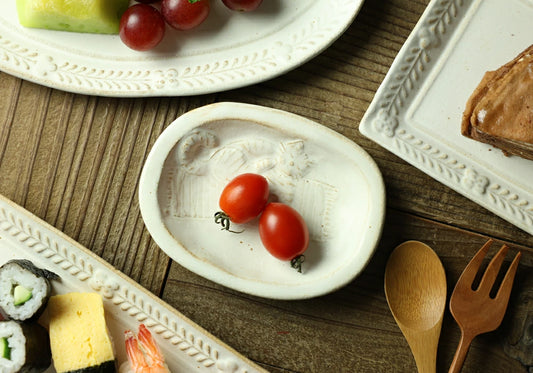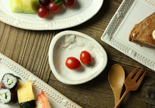 益子燒 葉形貓咪圖案小皿
