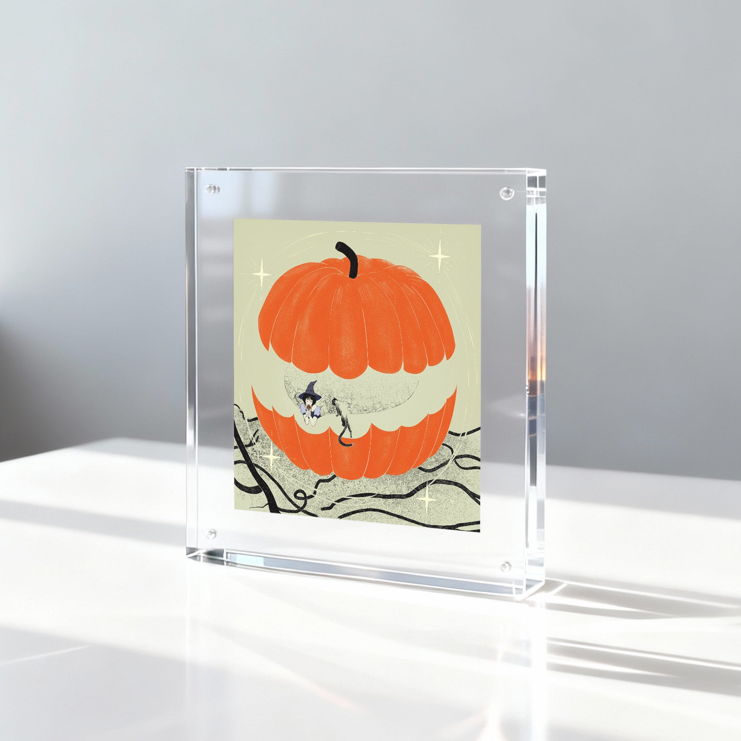 以萬聖節為主題,小魔女在一個裝滿糖果的南瓜內的明信片。