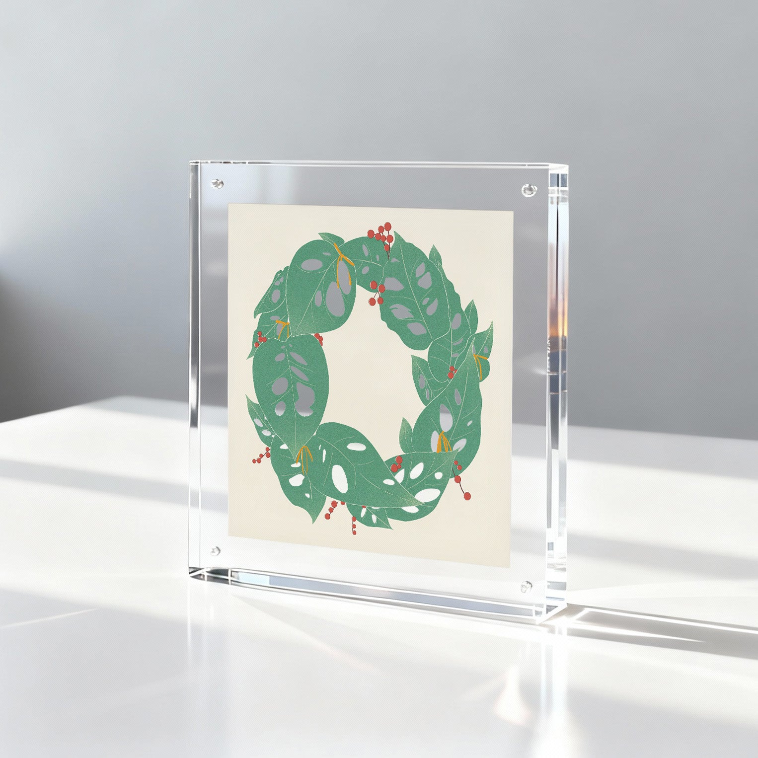 以香港原生植物:穿心藤作聖誕花環的元素所設計的聖誕卡,希望將香港郊野的光影帶進室內。