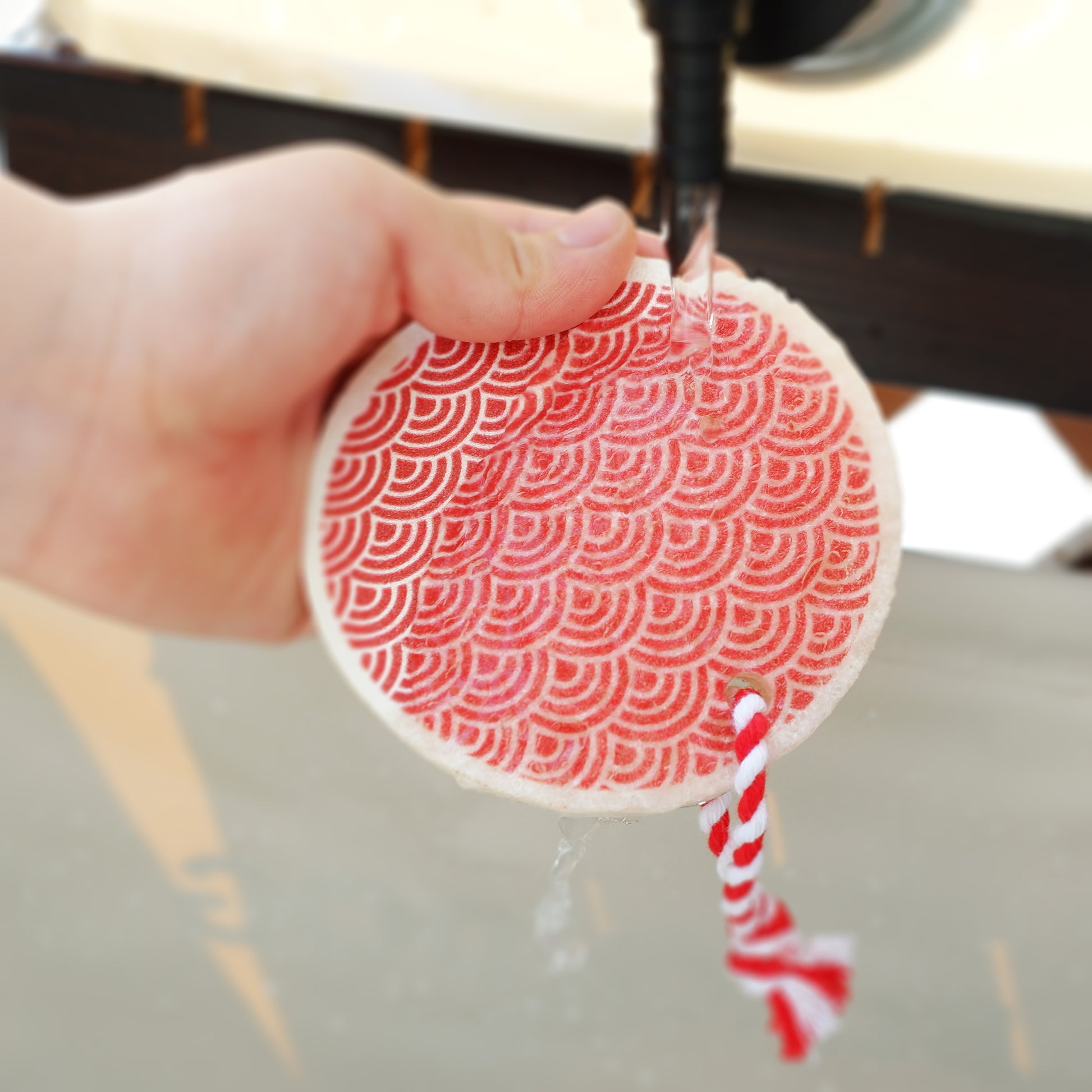 Leaffy plant fiber sponge Izumiko Rising Sun (Red)