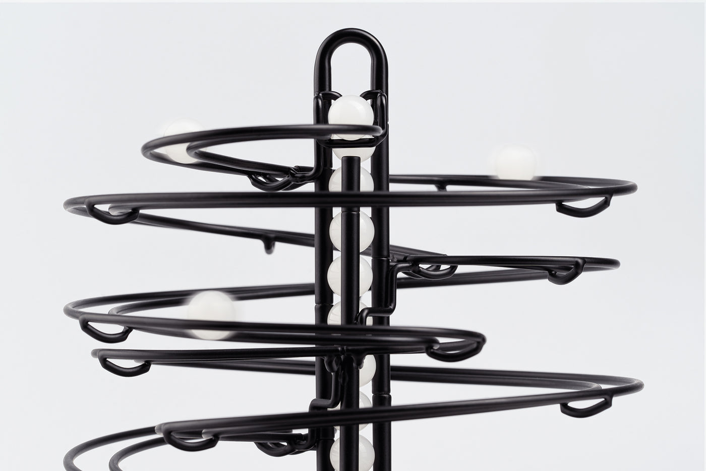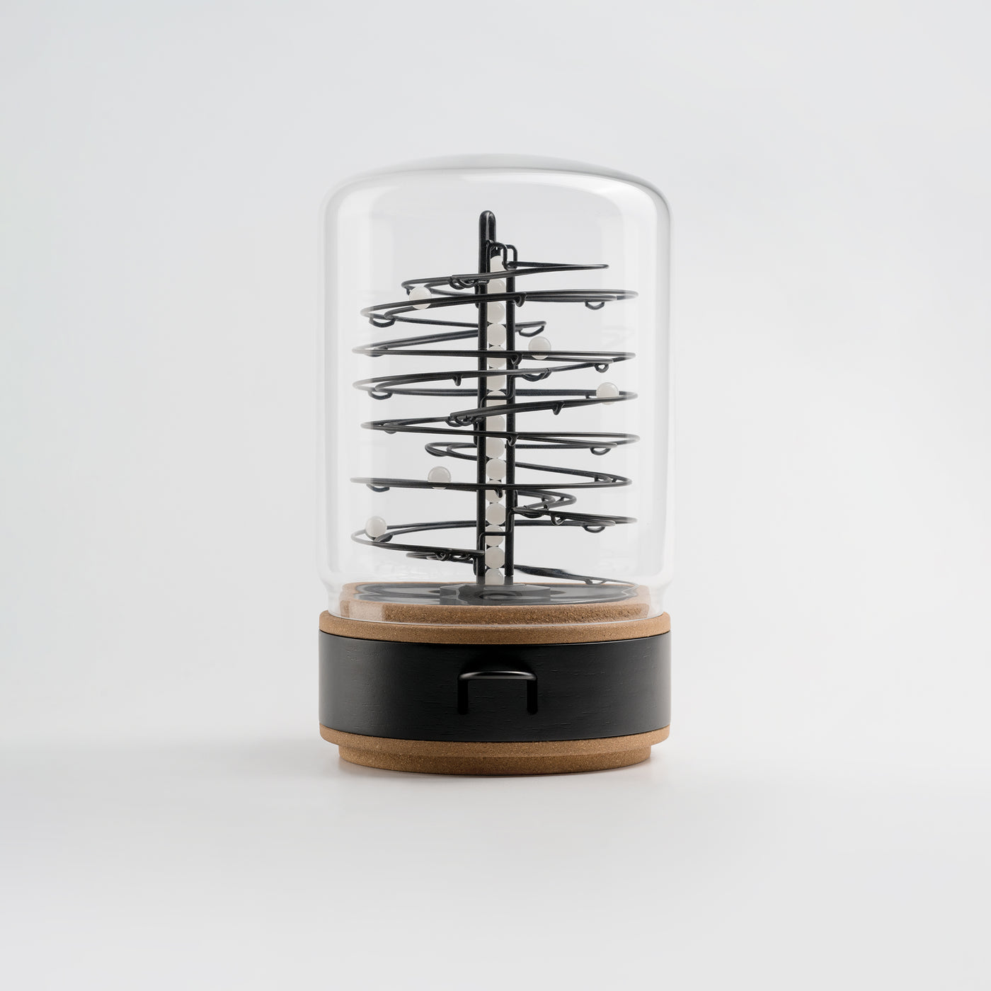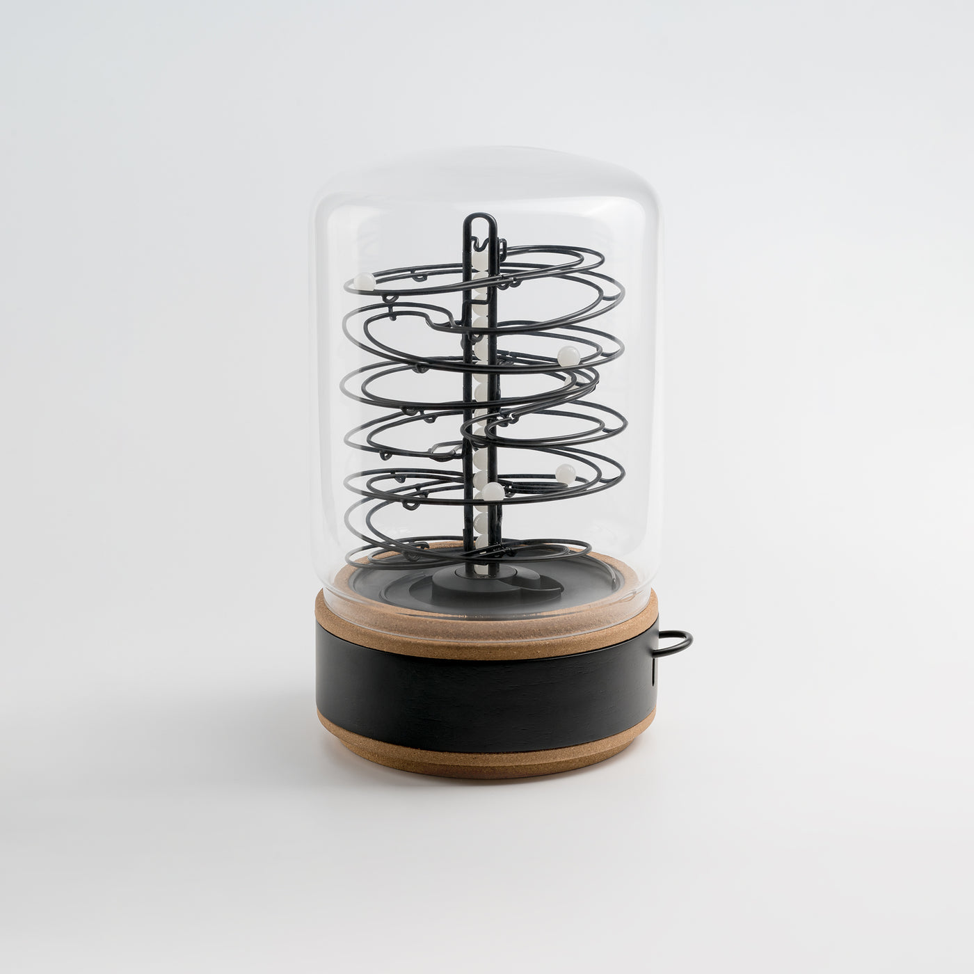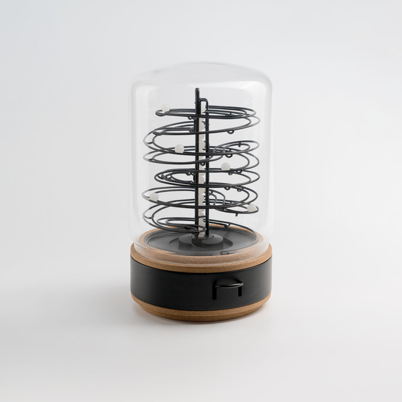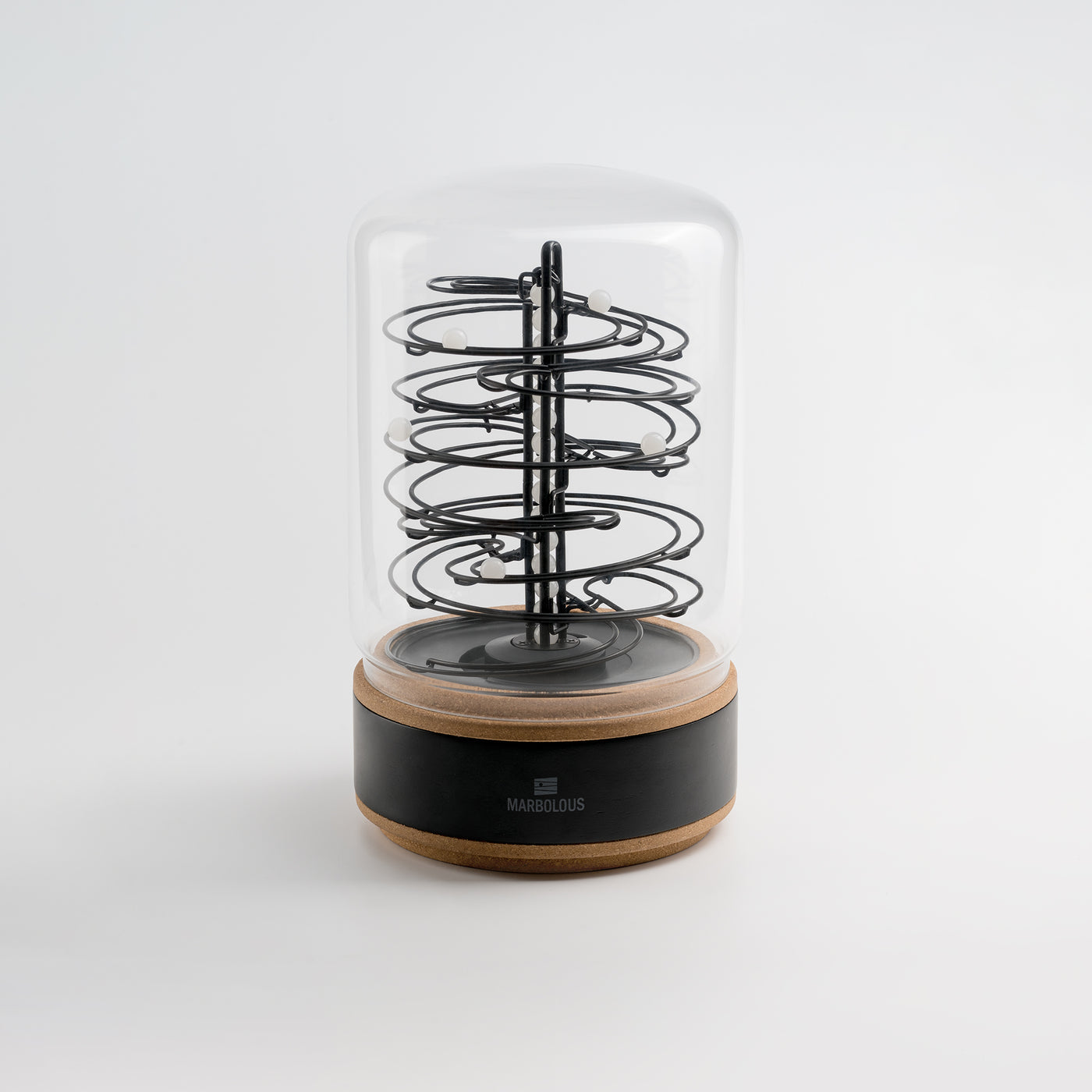 The track requires no wires, batteries or technology and inspires endless fun. Watch 30 white glass marbles roll, spin and rotate around a 360-degree metal track, coupled with an extremely healing complex mechanical marble lifting system. The protective glass dome adds another layer of glamor to your experience. A simple yet sophisticated healing device.