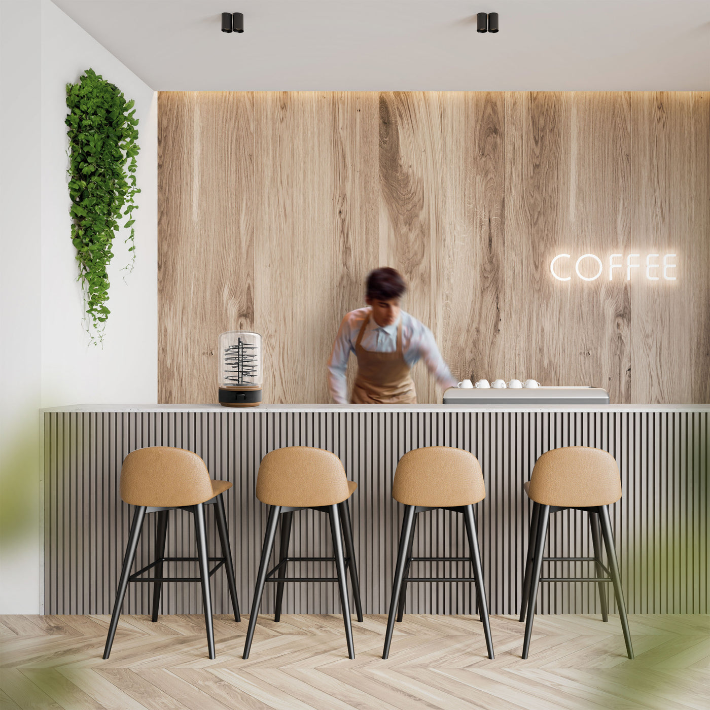 Material: plywood, recycled ABS plastic, stainless steel, silicone rubber, POM plastic, glass