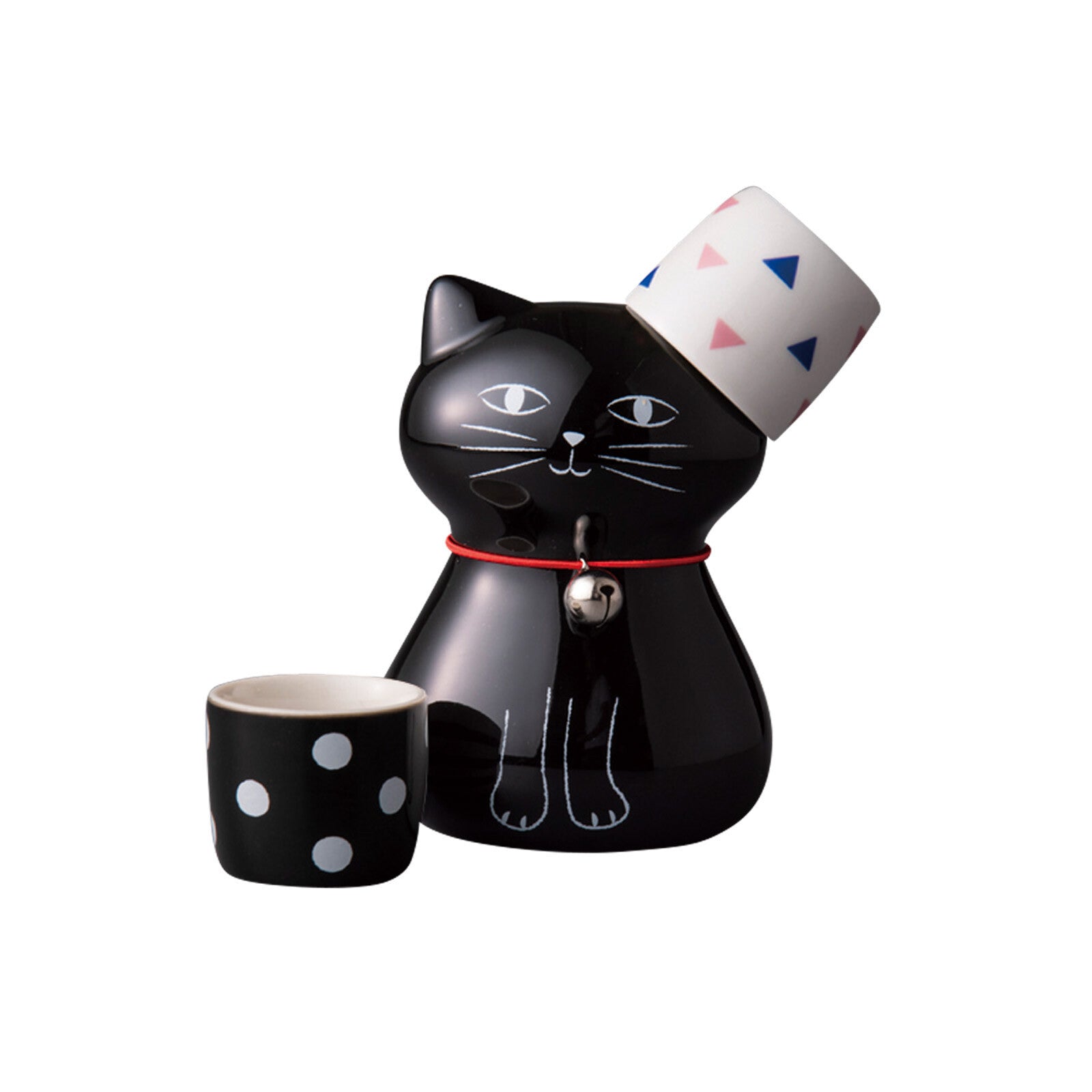 可愛的一套貓形酒壺和小酒杯。標誌性的貓今天以鎮定的表情迎接客人。如此可愛的臉坐在餐桌上,每個人都會不由自主地微笑。治愈家中飲酒聚會上的每個人。裝上杯子後,看起來就像戴著帽子。