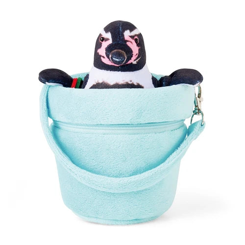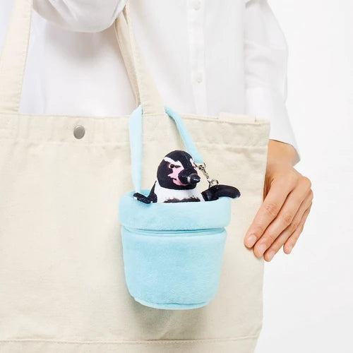 收納包重現東武動物公園的人氣王,屬洪堡企鵝的「啤酒君」走進水桶進行移動的姿態。拉開拉鍊,即可放入化妝品或零食。