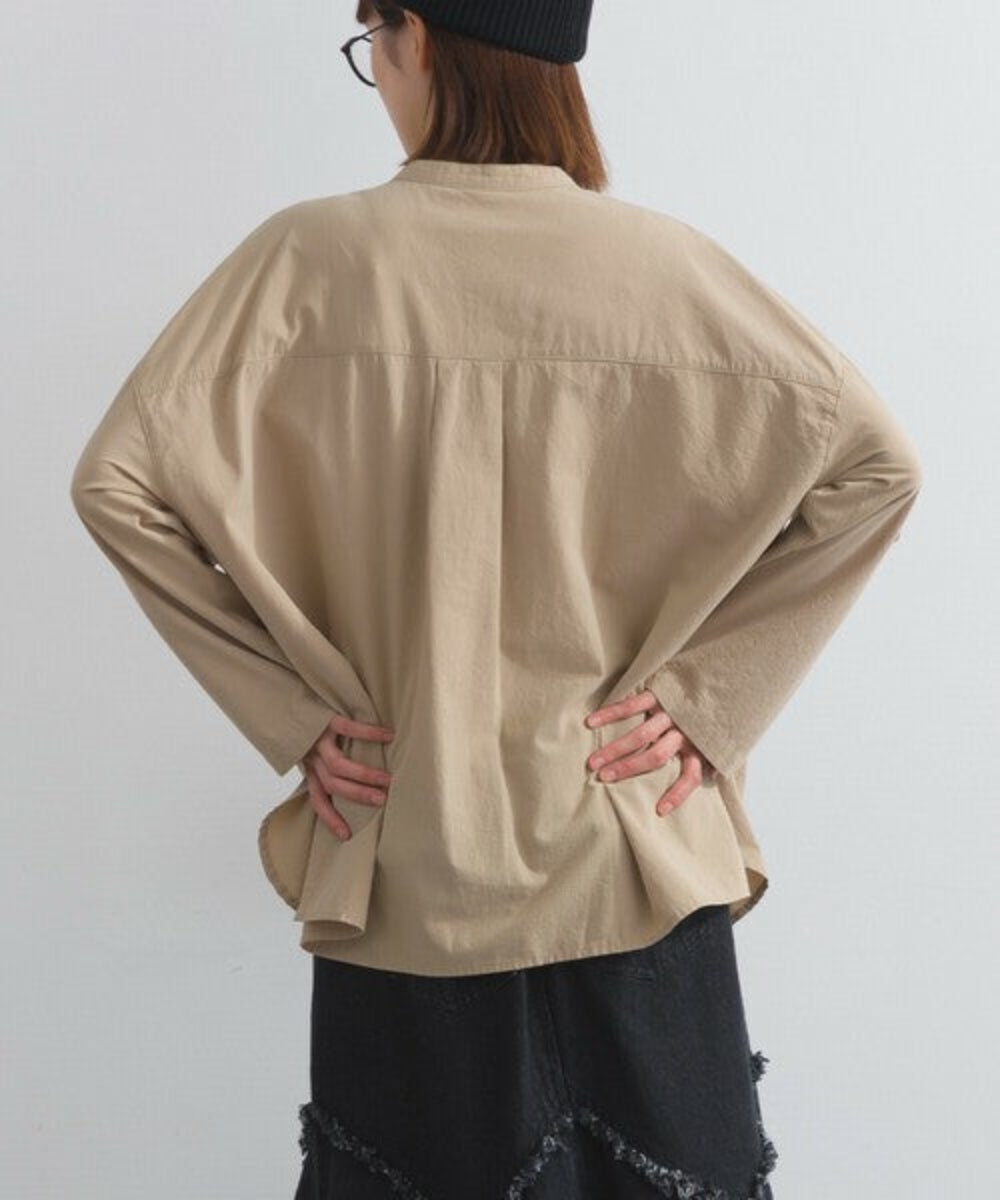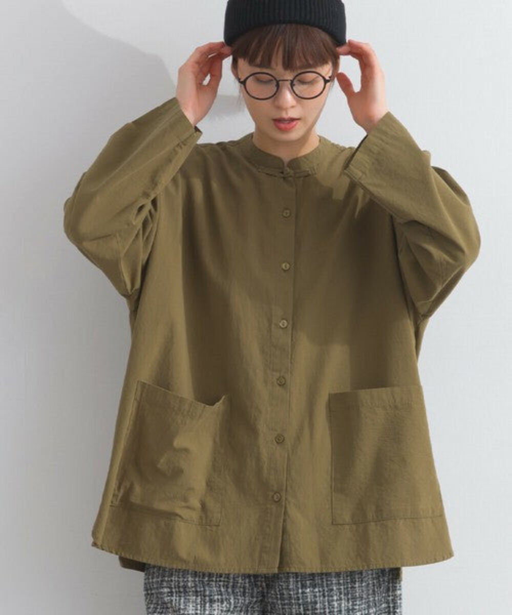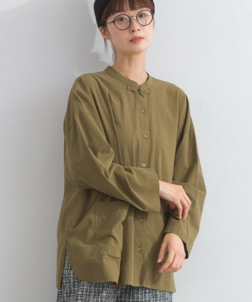 這款中式領襯衫採用略帶絨面質感的純棉布料製成。純棉布料的天然褶皺賦予其柔軟而不僵硬的外觀,布料的柔軟度也體現在其觸感上。除了棉質布料特有的輕盈質感外,觸感也十分溫暖舒適,表面彷彿經過水洗處理,穿著即可給人一種精緻優雅的感覺。