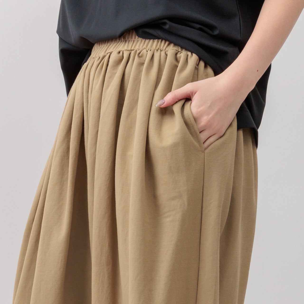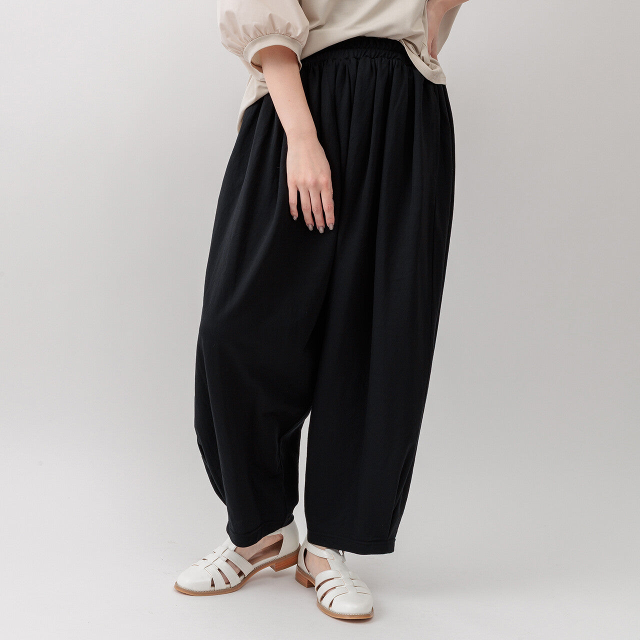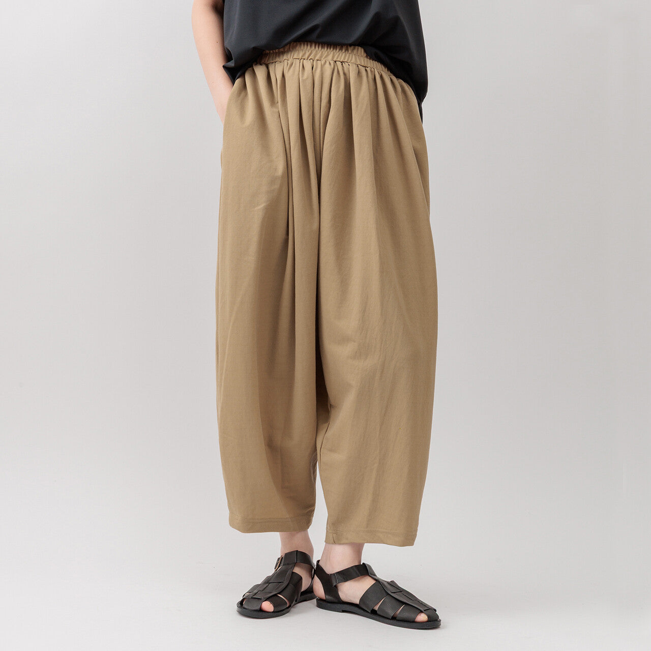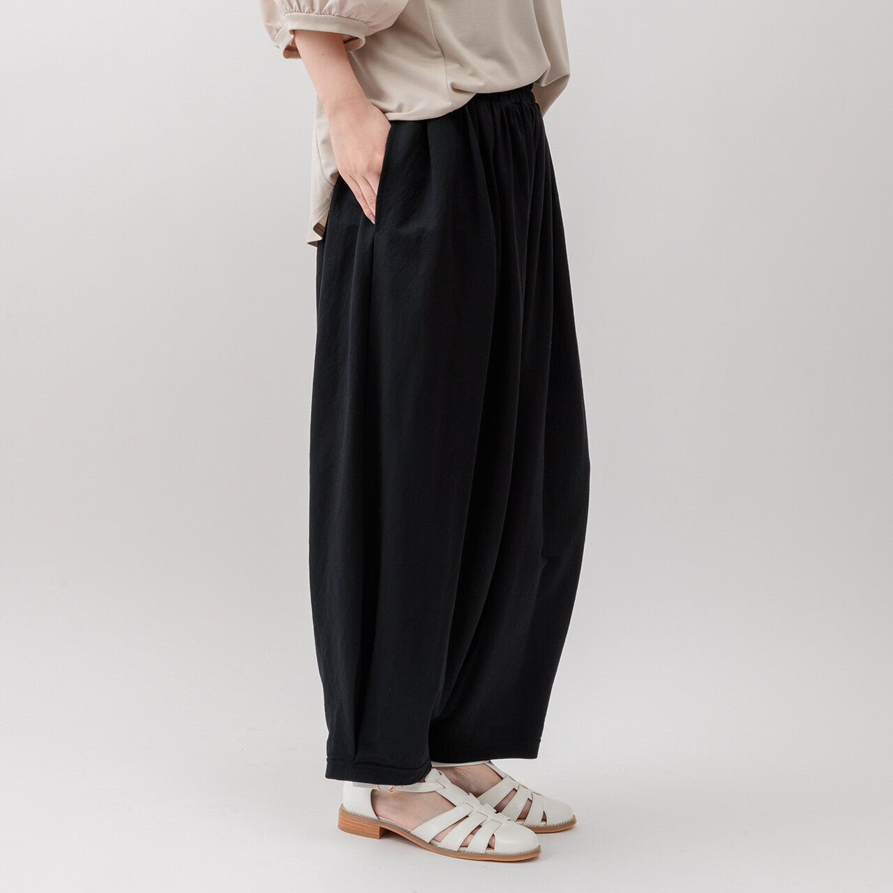 具有寬鬆的版型,腰部有大量褶皺,但仍具有輕鬆的感覺。