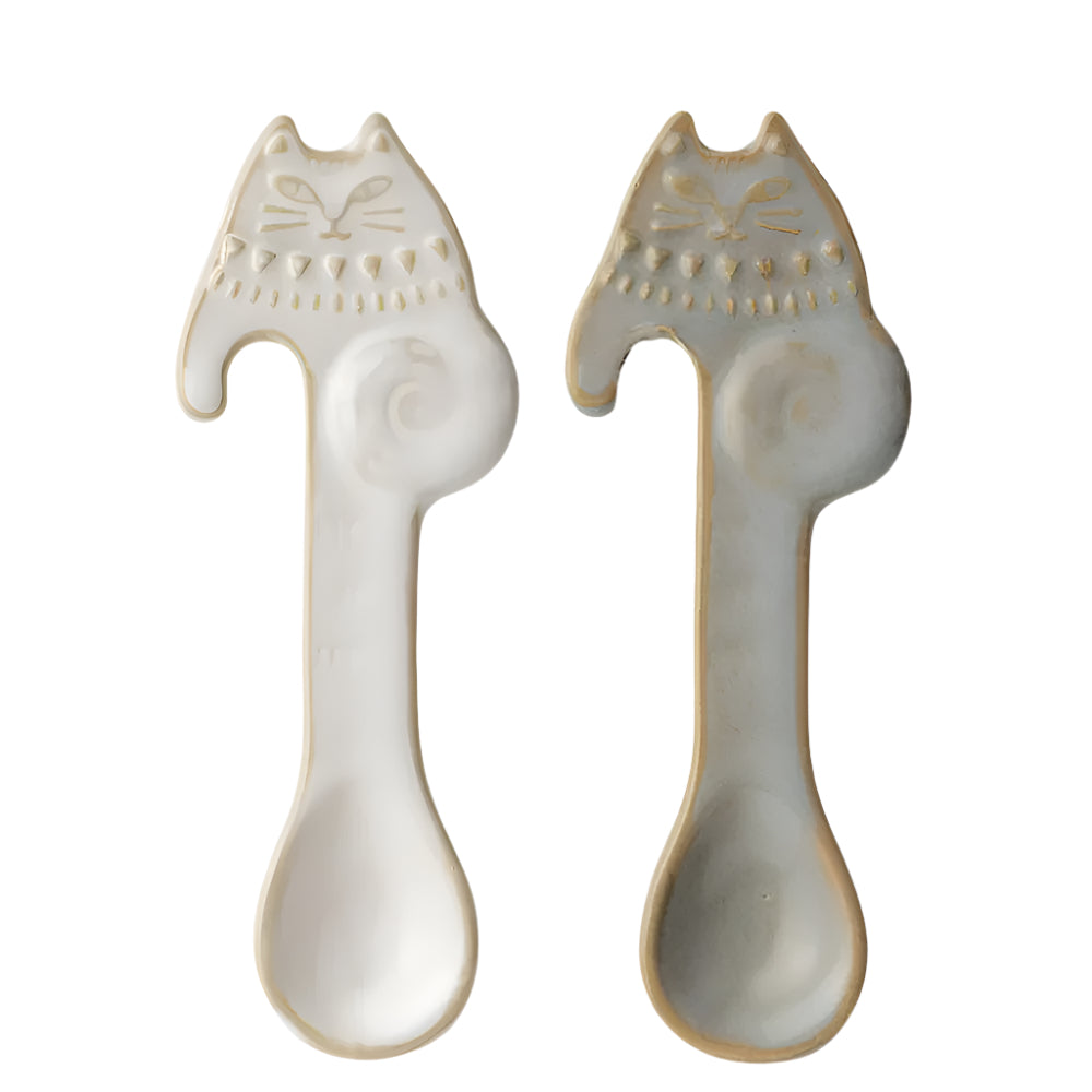 這款貓咪餐具採用浮雕圖案和窯變釉,個性十足。可以掛在杯緣。擁有設計相同的馬克杯(單獨出售),可以搭配使用。可愛又成熟的設計,適合作為禮物。兩種顏色可選。尺寸: 4x1x11 cm材質:陶瓷