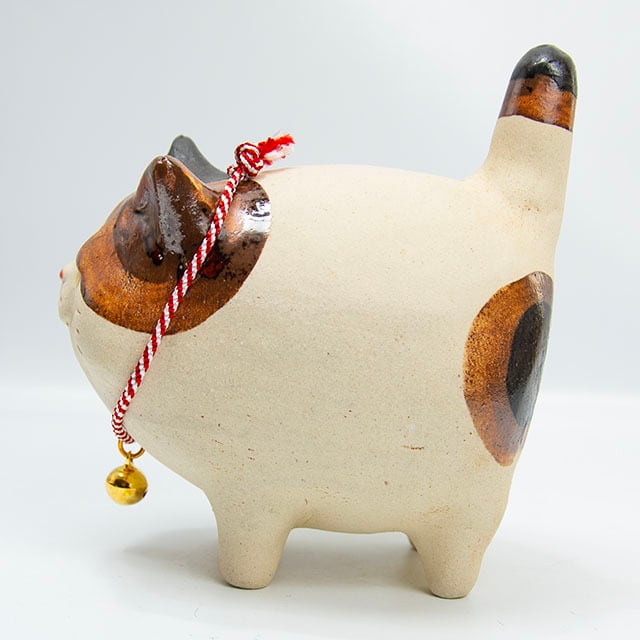陶藝家 布施 猫 喜歡以貓為製作人形中心,製作出具有自己特色的日本緣起物。 每一只作品的樣子都充滿反差感,有一點奸,卻散發出一種可愛。