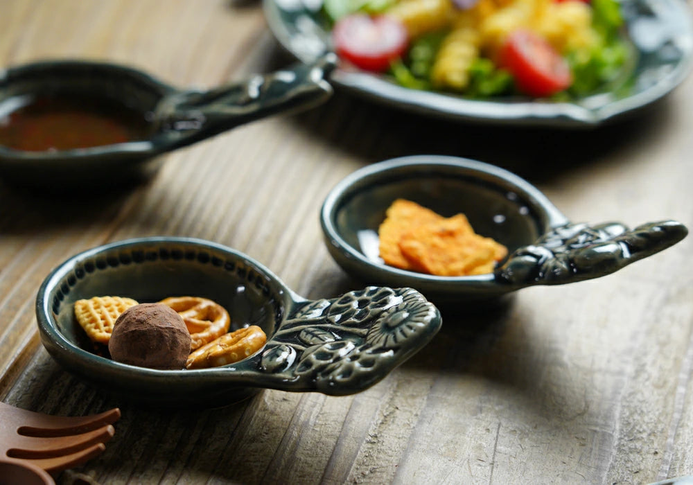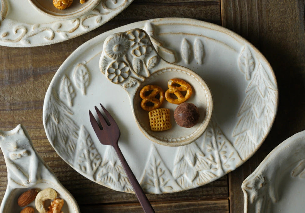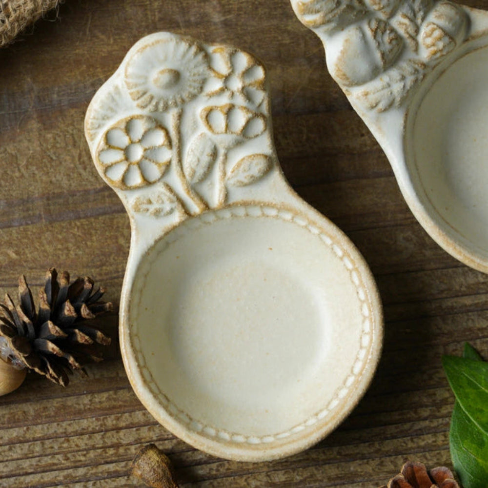 花朵浮雕圖案十分引人注目。柔和的色彩營造出溫馨愉悅的餐桌氛圍。