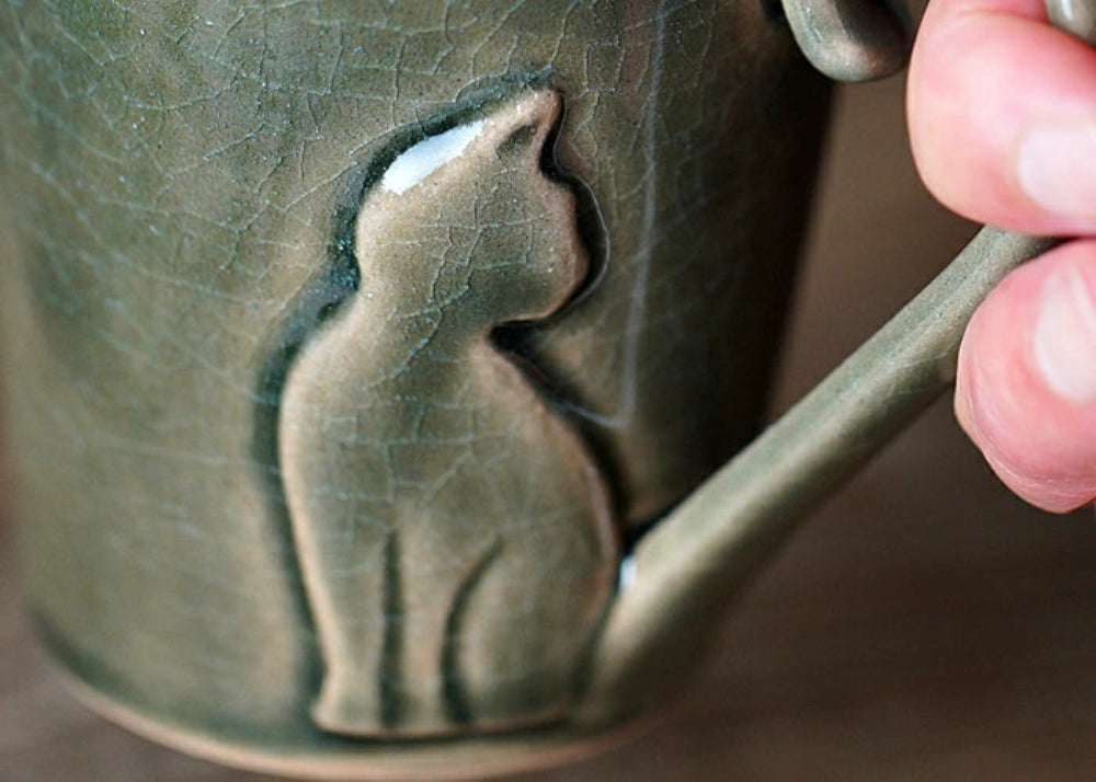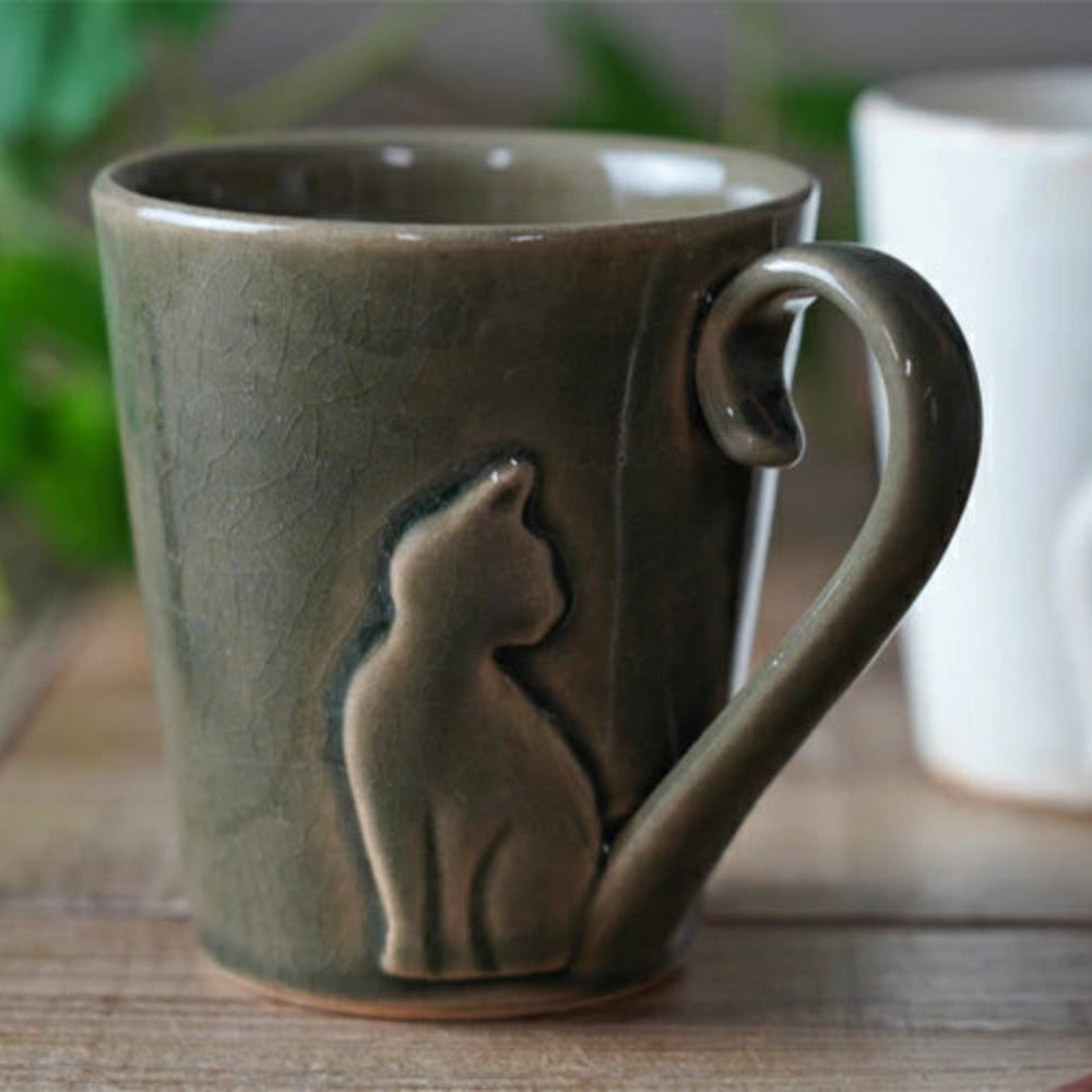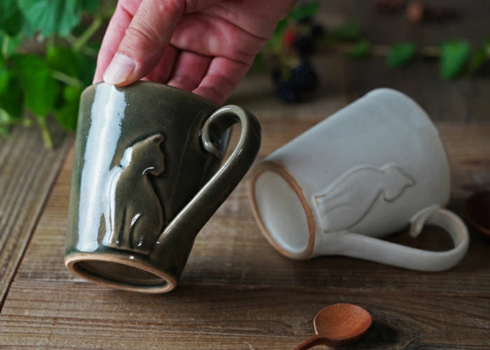 這款設計獨特的馬克杯以貓尾巴為把手。從躍然紙上的貓咪輪廓到捲曲的尾巴,每個細節都由益子燒工匠手工打造。這款可愛的貓咪馬克杯將為您的居家時光增添一份溫馨。可微波加熱,方便您隨時享用。也是送給愛貓人士的絕佳禮物。