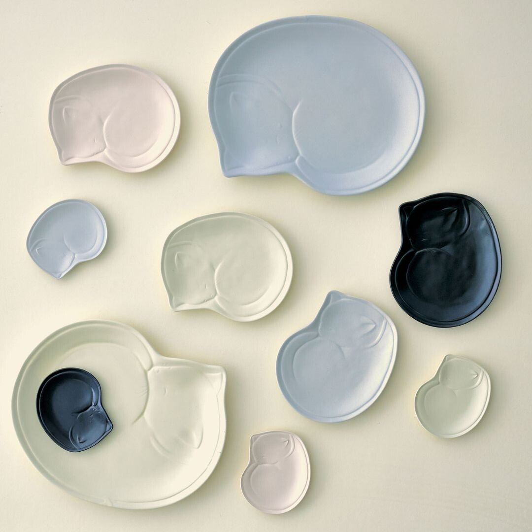 這些可愛的貓咪餐具色彩柔和,表面採用霧面處理。