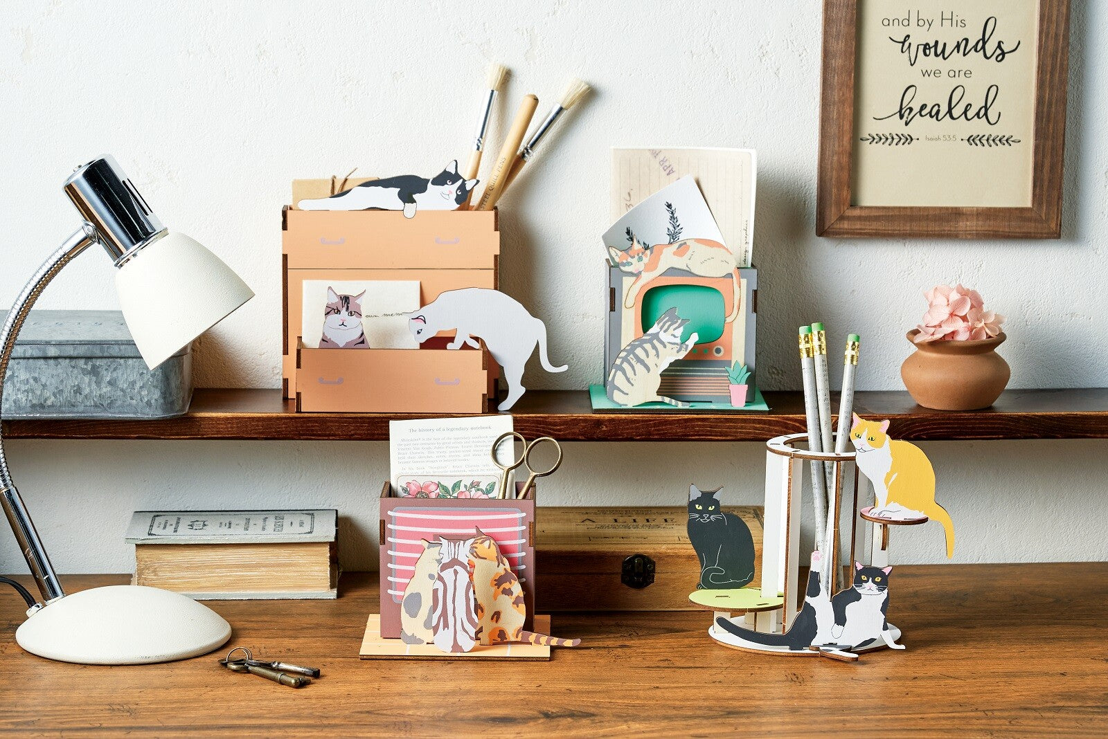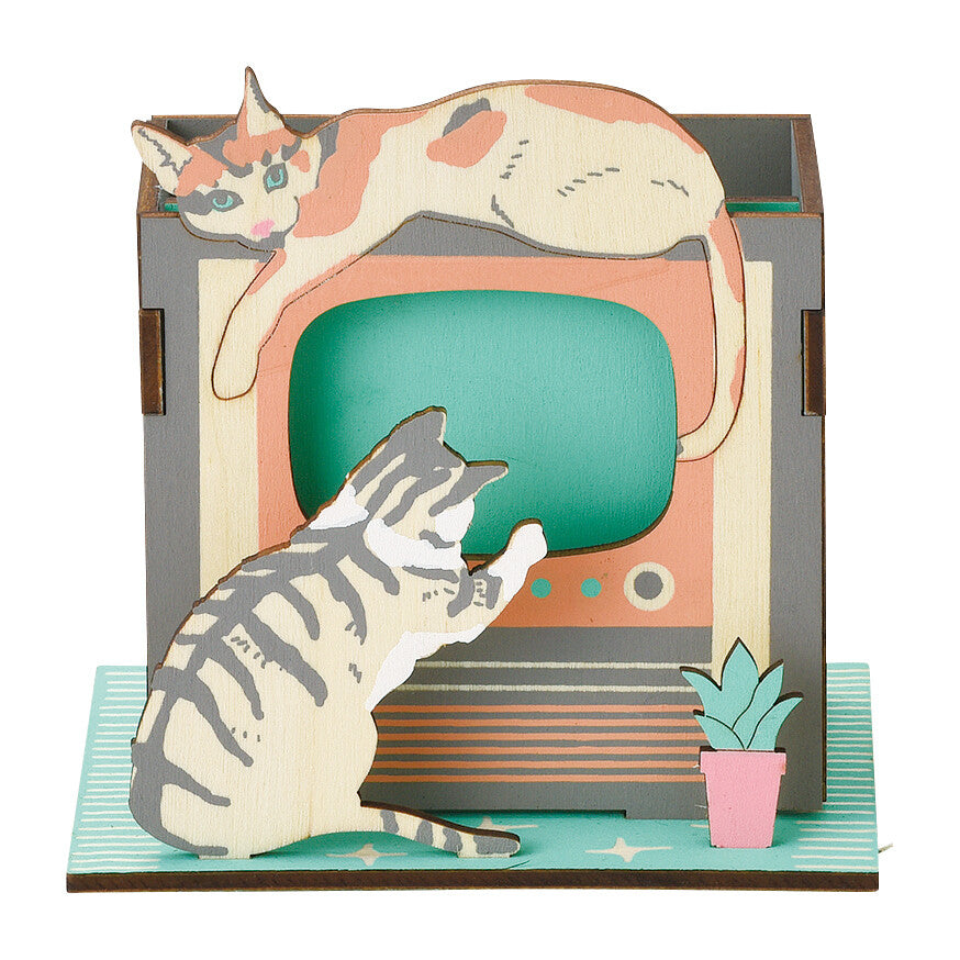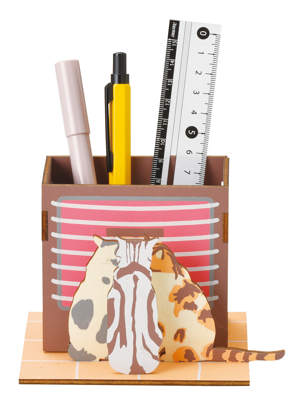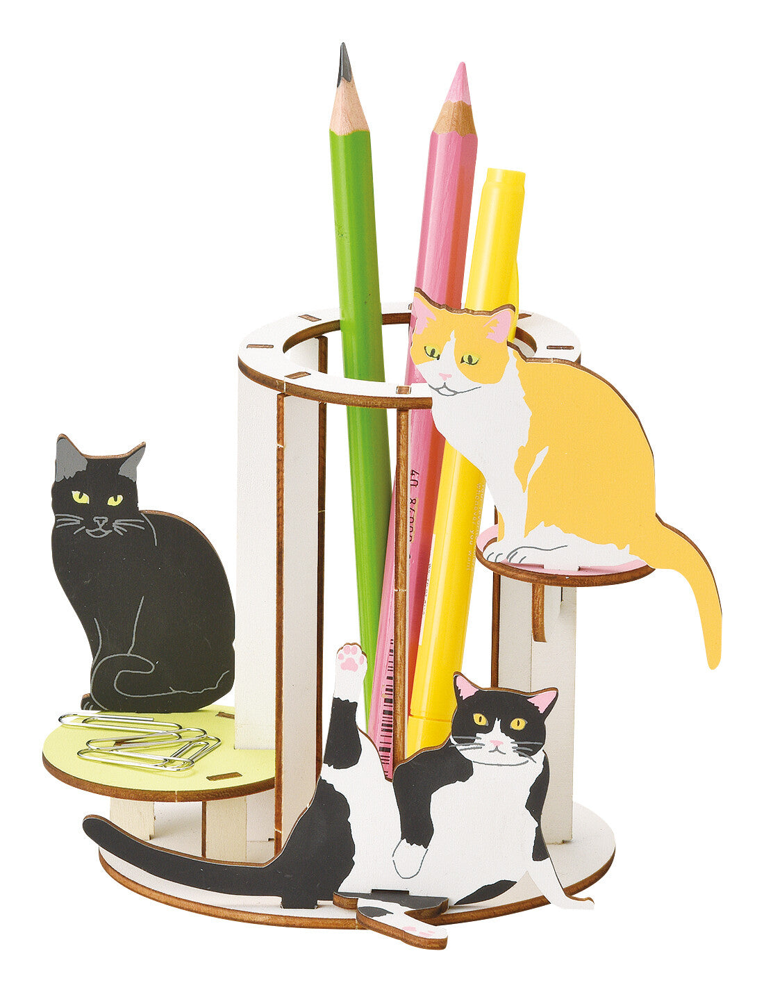 木製貓咪拼圖,組裝後變成可愛的桌面收納盒或筆座。趣味十足,裝飾桌面樂趣無窮。