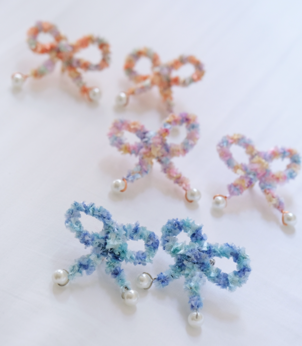 以色彩繽紛的混合線鉤織成蝴蝶結耳針/夾