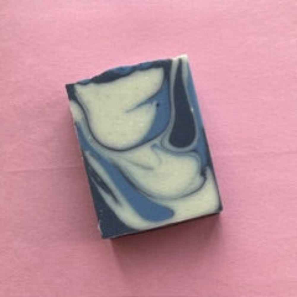 Ingredients: Olive Oil, Coconut Oil, Rice Bran Oil, Cocoa Butter, Blue Clay, Pearl Powder, INdigo Powder, Colloidal Oatmeal, Vitamin E Oil, Colloidal Silver, Lavender Essential Oil, Cedarwood Essential Oil, Peppermint Essential Oil